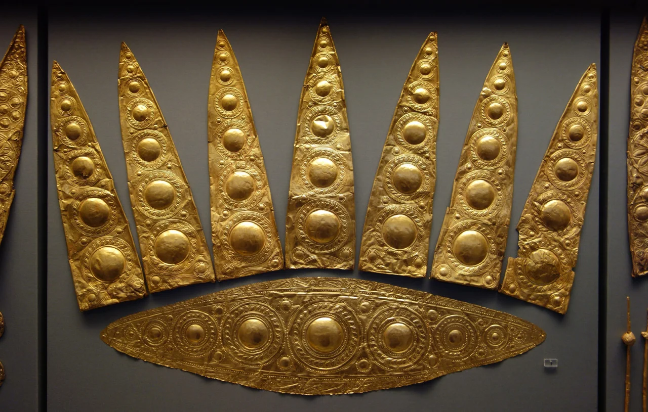 Gold diadem and necklace from Grave Circle A at Mycenae, Greece. These artefacts date to c. 1600-1100 B.C.E.