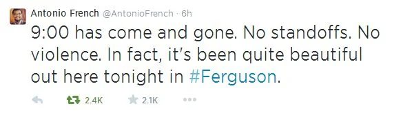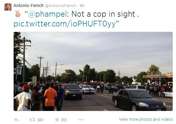 i’ve seen a lot of people reblogging news from ferguson, wondering if the situation has changed at all. the answer is YES—massively! so i thought i would compile some updates, courtesy of alderman antonio french (who, less than 24 hours ago, was being [wrongfully] held in jail for alleged unlawful assembly). the time right now is 4:20AM CST, august 15th.