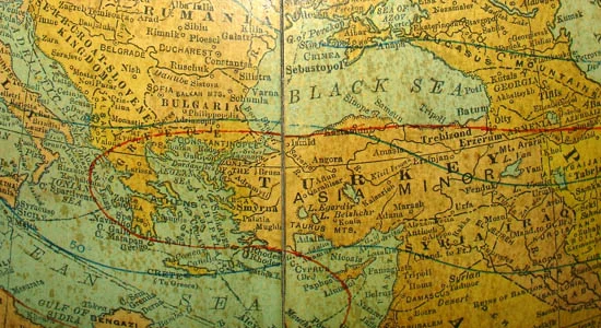 Rand McNally & Company 18-Inch Terrestrial Floor Globe, Chicago: c. 1924, mahogany Jacobean style stand. Istanbul was Constantinople and St. Petersburg had not yet been renamed Leningrad. The interesting horizon band features a diagram of ocean depths and high peaks around the world.