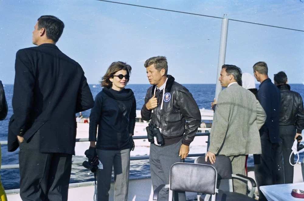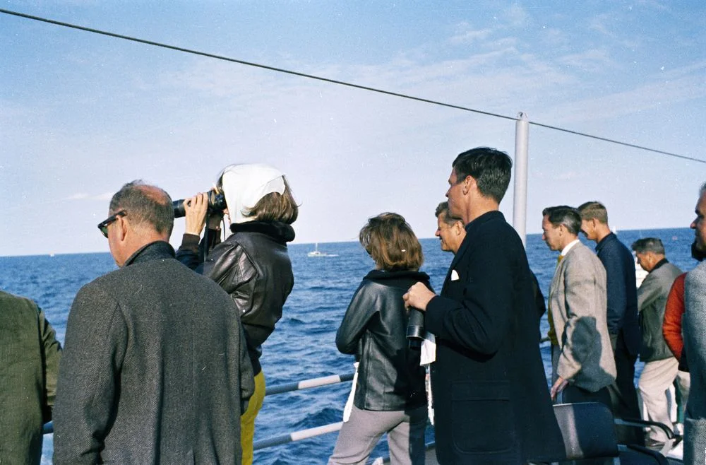 President John F. Kennedy and First Lady Jacqueline Kennedy attend the fourth race of the 1962 America’s Cup aboard the USS Joseph P. Kennedy, Jr., off the coast of Newport, Rhode Island- JFK Library