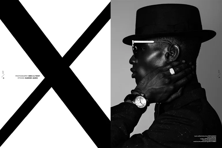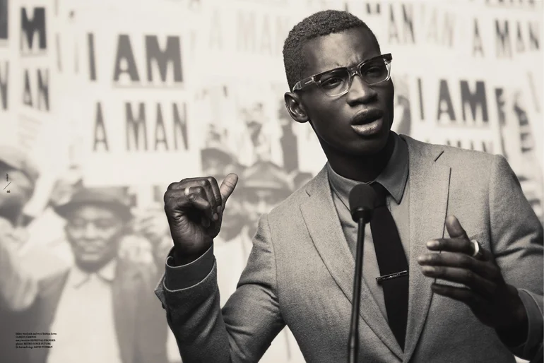 Adonis Bosso in “X” a Malcolm X inspired shoot for Veoir Magazine. Photographed by Idris & Tony, styled by Kareem James.