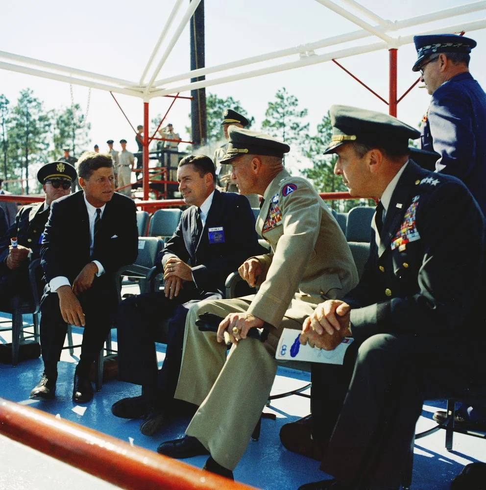 President John F. Kennedy visits 82nd Airborne Division and observes combat readiness demonstration at Fort Bragg, North Carolina ~ Oct. 12, 1961