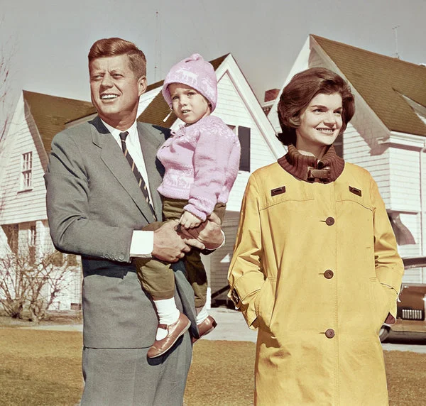 The President-elect and first-family-in-waiting meet the press on the morning JFK is declared winner of the 1960 presidential election. John, his wife Jacqueline and their daughter Caroline would soon be trading their Hyannis Port home for the White House ~ Nov. 1960