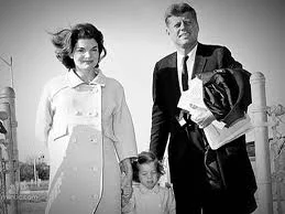 John f kennedy, jackie and Caroline. It looks like jackie is pregnant with John f Kennedy jr