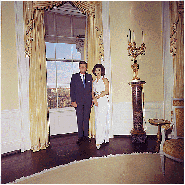 President and First Lady, Portrait Photograph. President John F Kennedy, Mrs. Jacqueline Kennedy. White House, Yellow Oval Room., 03/28/1963