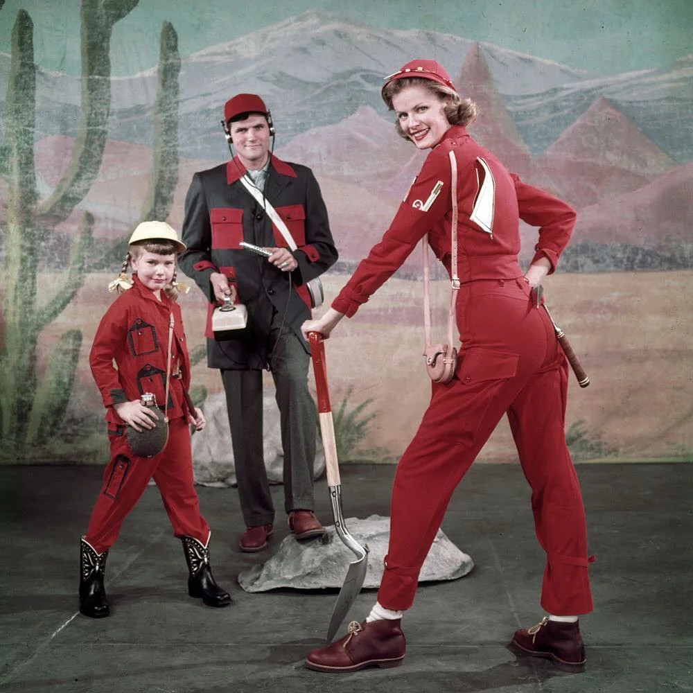 In this unpublished 1955 fashion shoot, LIFE showcases what you need to wear to be an amateur Uranium prospector. Pictured here is a young girl in a ‘Diggerette Jr. Suit,’ Dad in a ‘Smock Suit,’ and Mom wearing a 'U235 Suit.’ And of course, don’t forget your Geiger counter! (Nina Leen—The LIFE Picture Collection/Getty Images) #fashionfriday