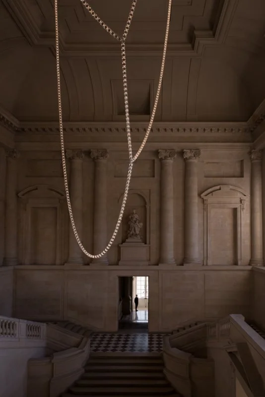 The Gabriel Chandelier is the first permanent contemporary piece installed in the Château de Versailles and hangs over the Gabriel Staircase at the main entrance to the palace.