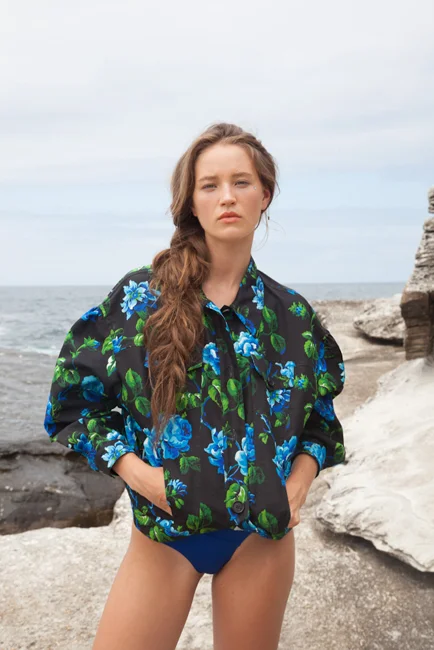Jennifer wears Miu Miu jacket, Agent Provocateur bikini bottoms