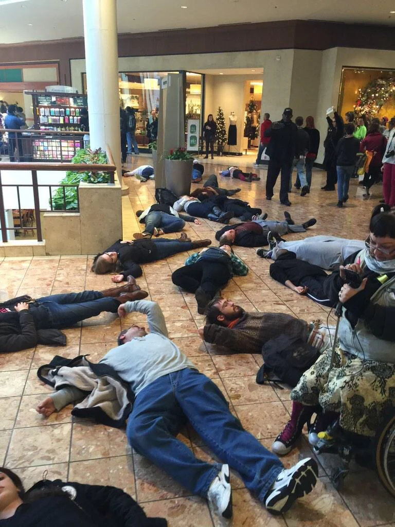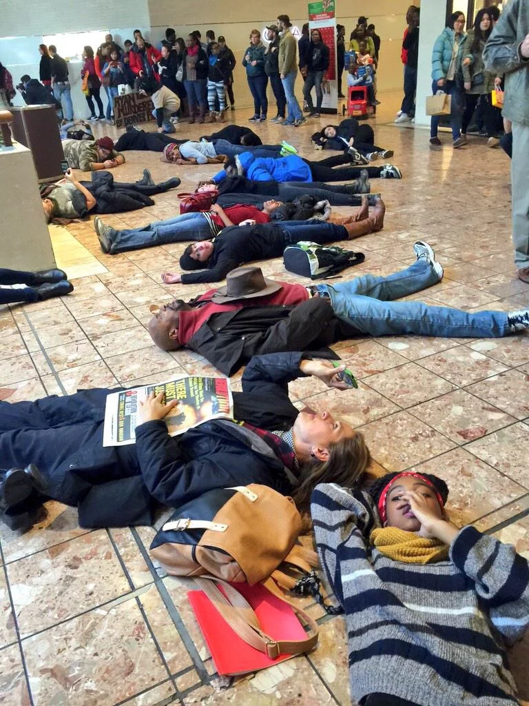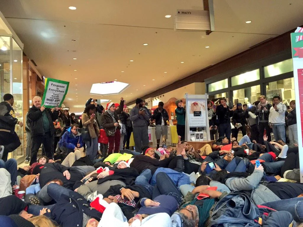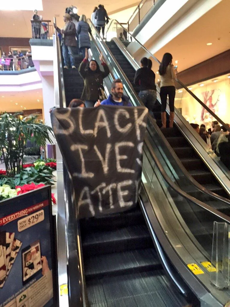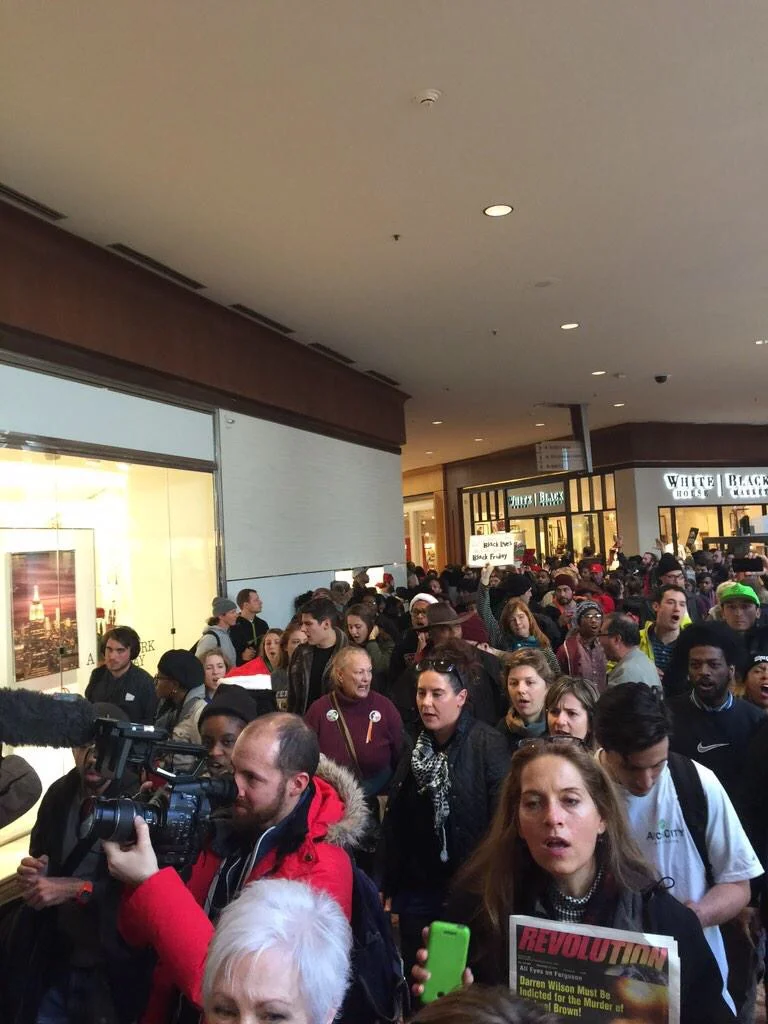 photos of the #blackoutblackfriday protest at the galleria mall in st. louis. protestors are successfully getting the mall shut down as we speak. (photo credit: @deray)