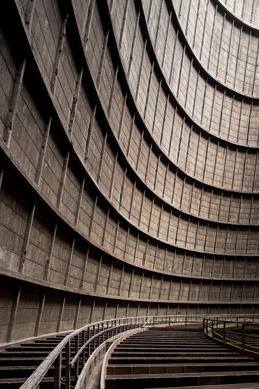 Inside an abandoned cooling tower. This particular one is from the Electrabel power plant, located in Monceau-sur-Sambre, Belgium. Built in 1921, it produced energy from coal and was once responsable for 10% of the entire country’s CO2 emissions. It was shut down in 2007 and is now a symbol of the fading industrial region of Charleroi.