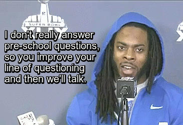 “I mean I wasn’t intimating anything. You know I like journalist. I don’t like people who just throw out dumb questions and try to incite controversy and let the story write itself. I like people who dig deep and research and have some journalistic credibility.” - Richard Sherman